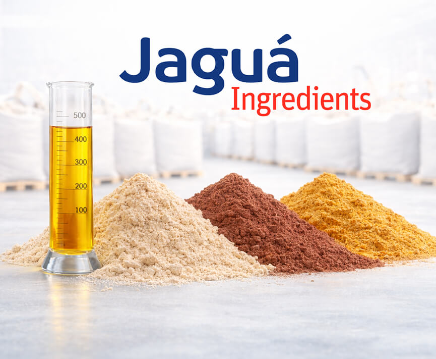 A Jaguá Ingredients também atua no fornecimento de ingredientes nutricionais para o mercado internacional, atendendo empresas da indústria de nutrição animal em diferentes países.