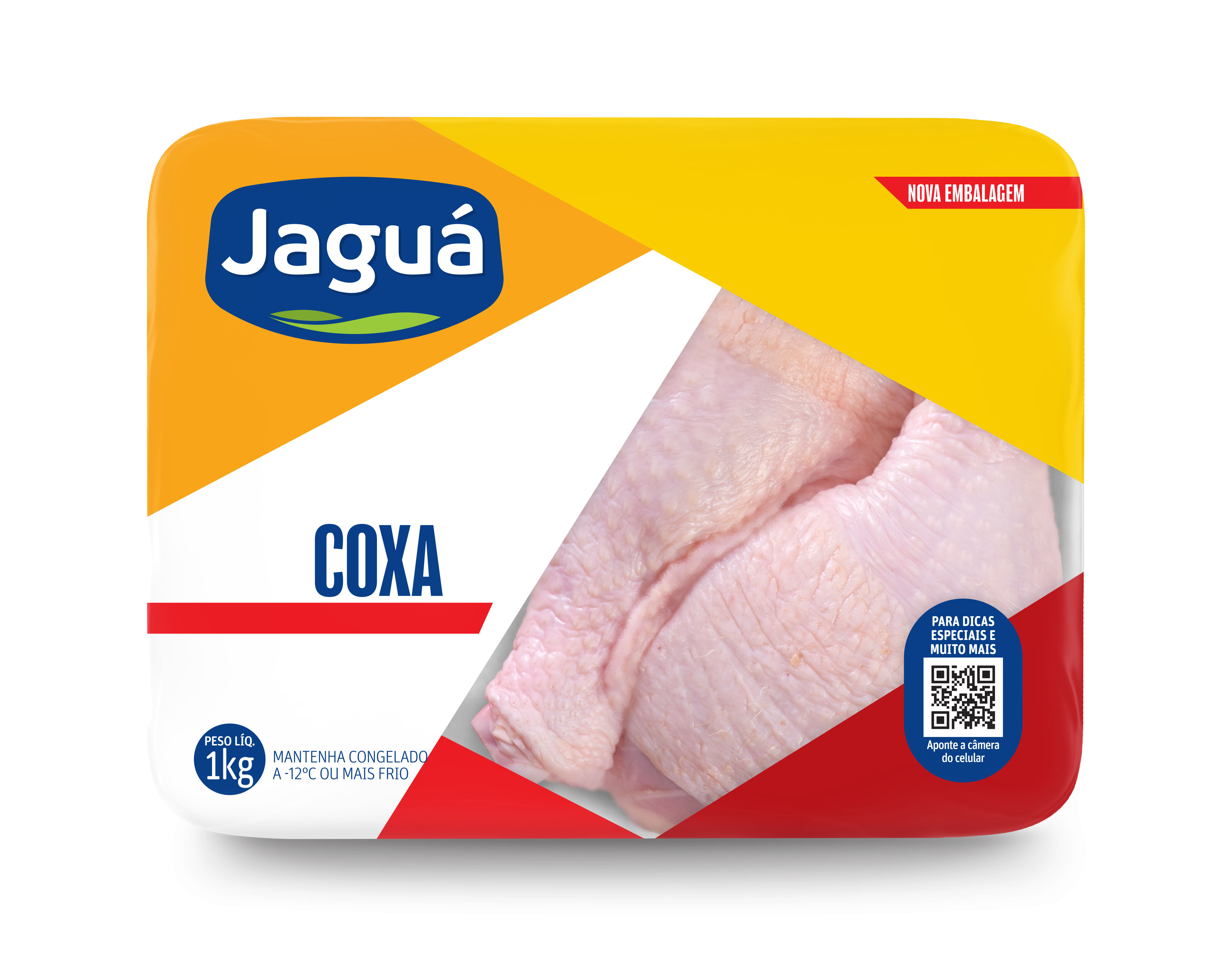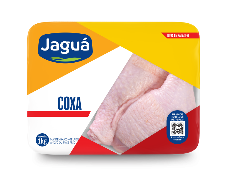 Coxa Jaguá realça gordura suculenta do osso único. Congelada, asse, grelhe ou cozinhe em molhos. Maciez profunda. Econômica para coxinha de galinha ou assados solos.