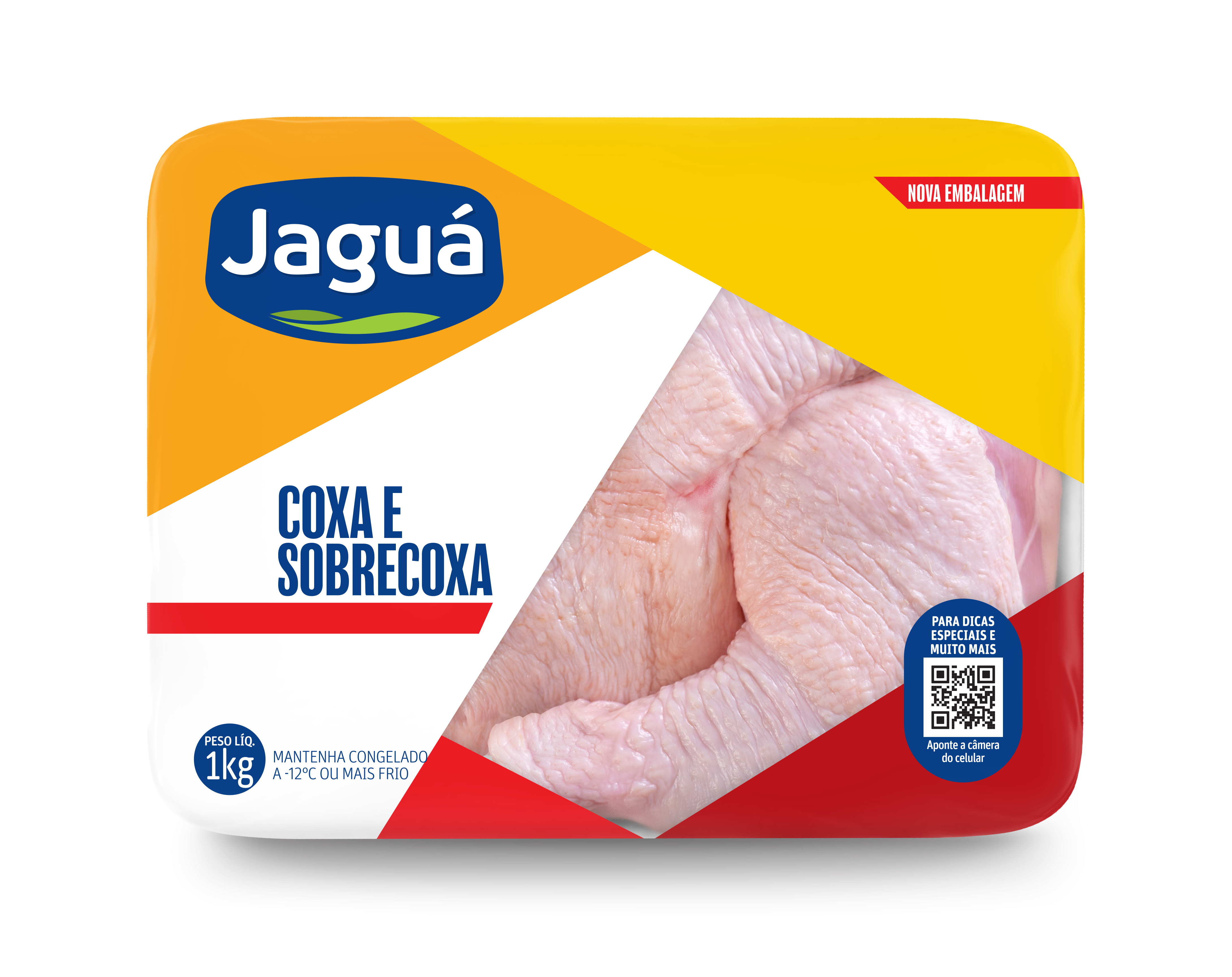A Bandeja Cortes Congelados Coxa e Sobrecoxa Desossada Jaguá 1 kg é preparada com cortes selecionados e desossados de frango fresco, congelados naturalmente para preservar o sabor. Essa escolha fica ainda mais suculenta e versátil para grelhar, assar ou air fryer. Em embalagem prática de 1 kg, ela fica no ponto certo: macia por dentro e dourada por fora! Com selo de confiança Jaguá, é a solução perfeita para refeições rápidas, churrascos ou pratos do dia a dia cheios de sabor.