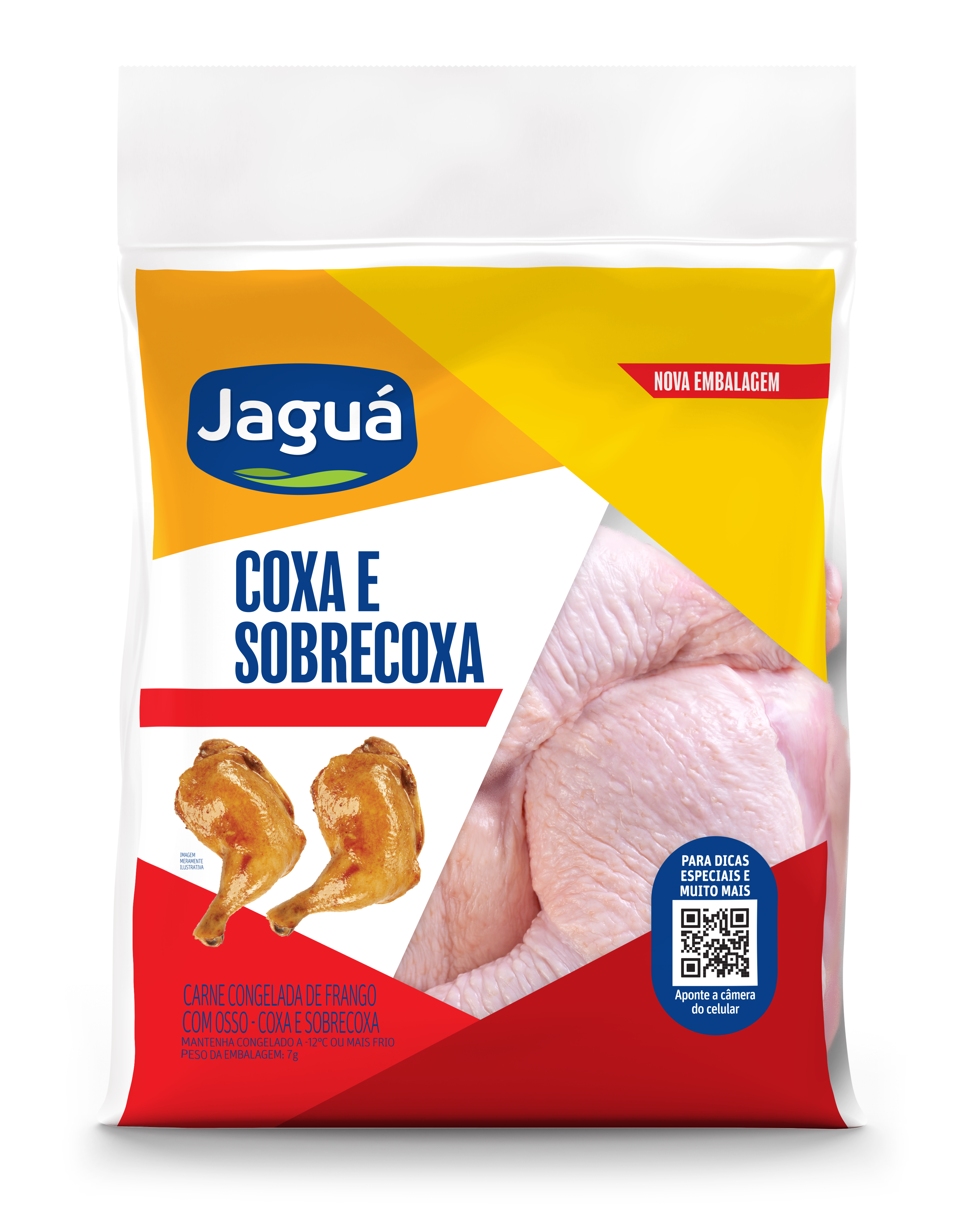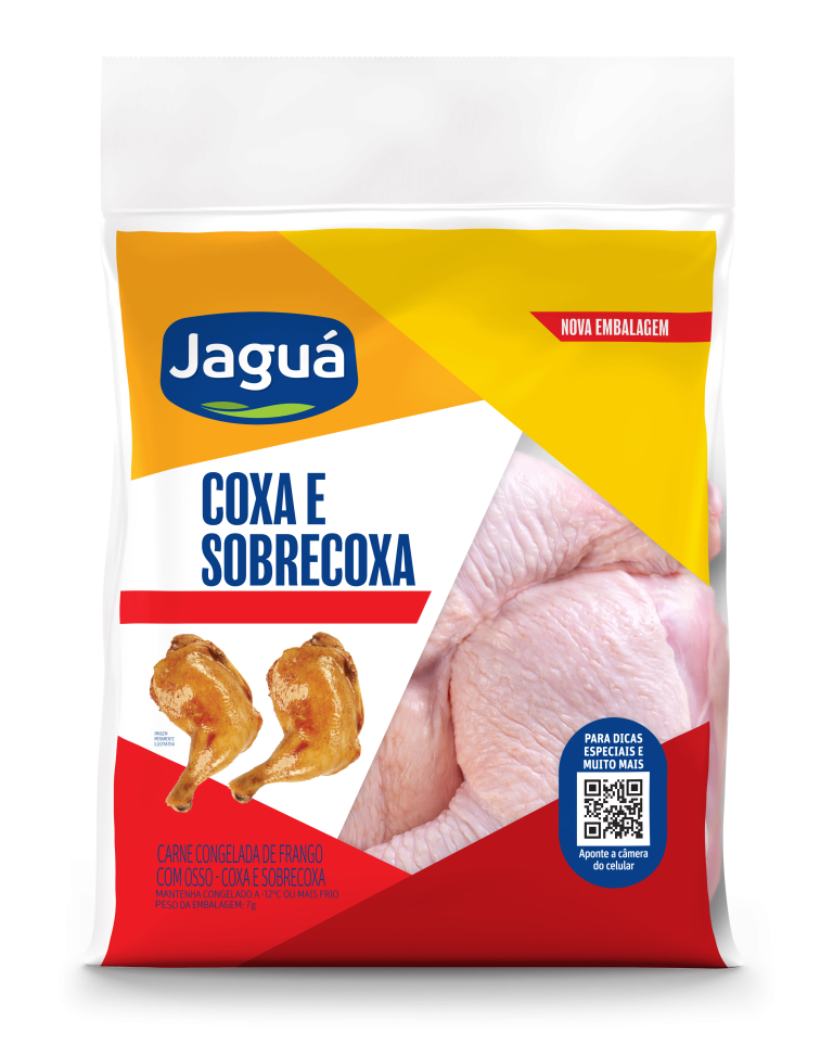 As Coxas e Sobrecoxas Jaguá são cortes congelados selecionados, com osso para mais sabor e suculência. Asse no forno, grelhe ou use na air fryer: ficam macias por dentro e crocantes por fora. Práticas para assados ou churrascos, são ideais para refeições familiares simples e gostosas.