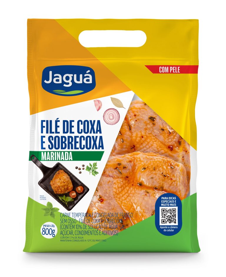 Filé de Coxa e Sobrecoxa Marinada Jaguá já vem temperado, garantindo praticidade e sabor equilibrado em cada pedaço. Carne suculenta e macia, ideal para preparo rápido em frigideira, forno ou air fryer. Excelente para refeições do dia a dia e combina com acompanhamentos variados.
