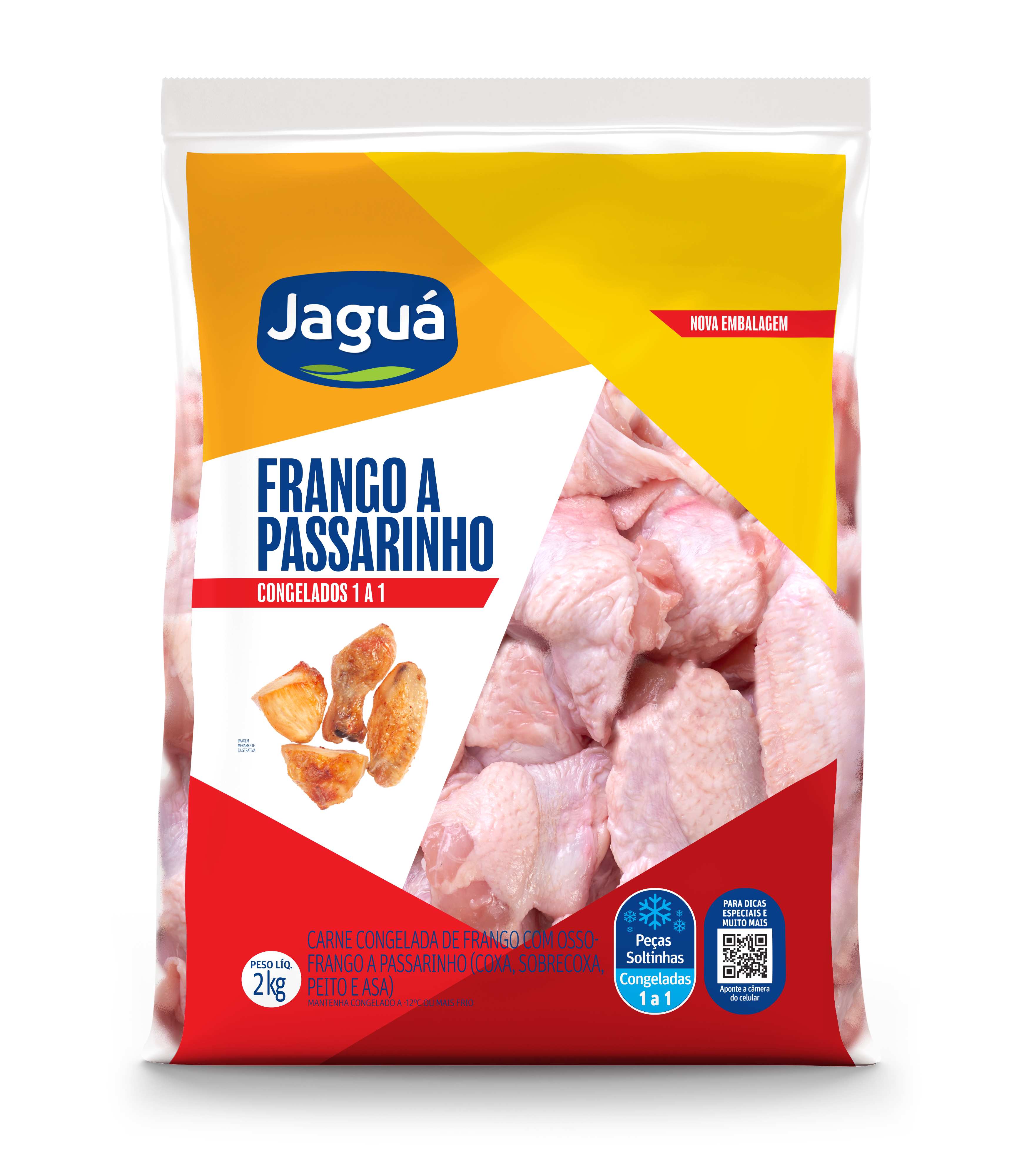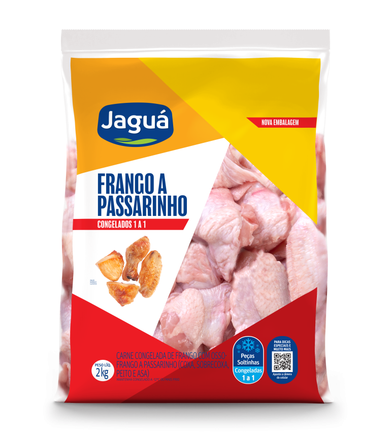 O Frango à Passarinho Jaguá vem em pedaços pequenos congelados, selecionados e prontos para temperar como você gosta. Frito, assado na air fryer ou grelhado, fica suculento por dentro e crocante por fora, com sabor que agrada a todos. Em embalagem de 2 k, é prático para petiscos de fim de semana, lanches rápidos ou como acompanhamento em arroz e salada. Economiza tempo na cozinha e rende uma refeição gostosa sem complicação para a família ou amigos.