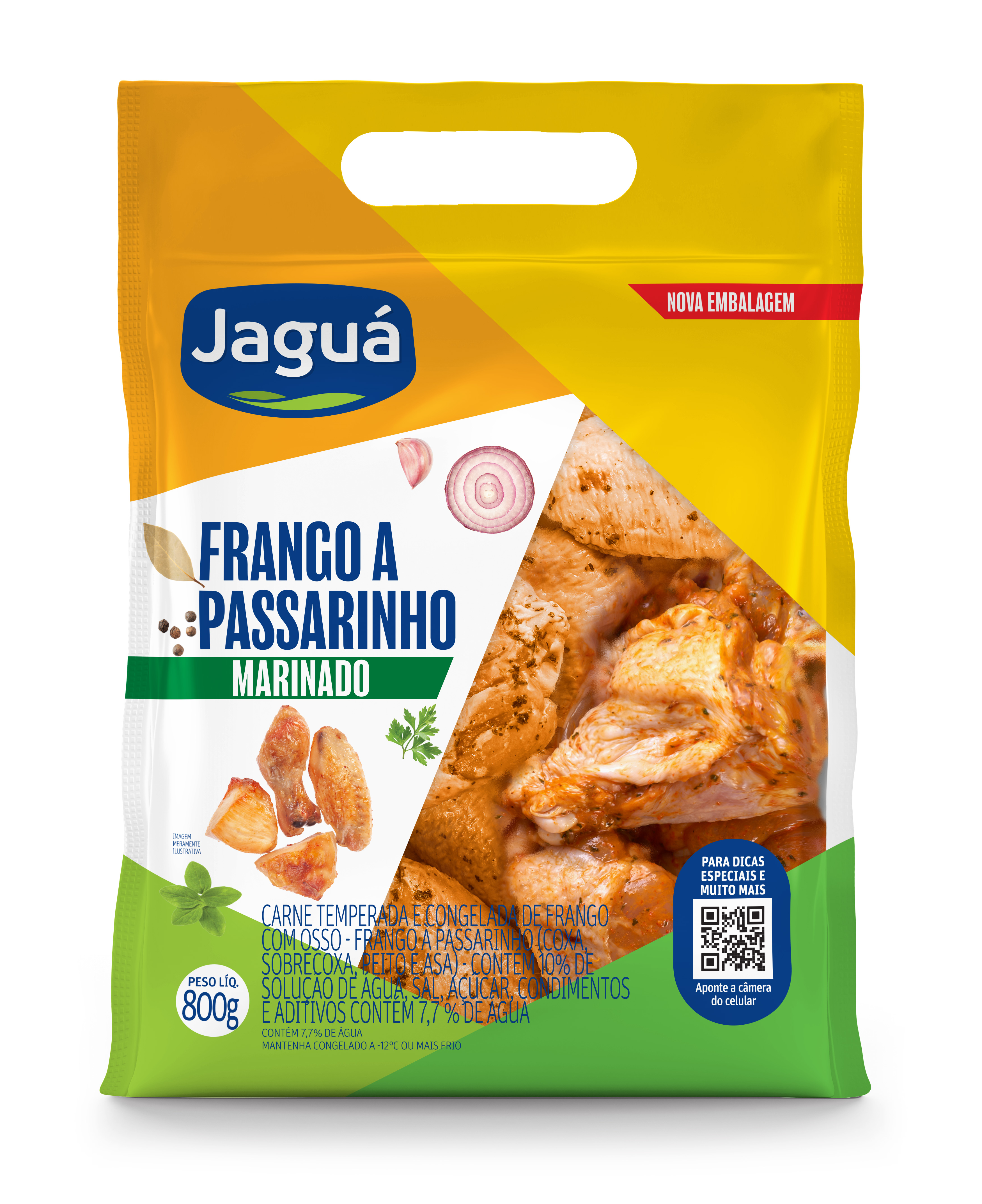 Frango à Passarinho Marinada Jaguá oferece pedaços já temperados, ideais para crocância rápida. Congelado, frite em óleo quente, air fryer ou grelhe. Sabor uniforme por dentro. Perfeito para servir em porções.