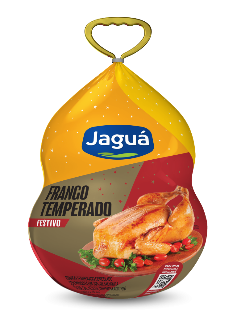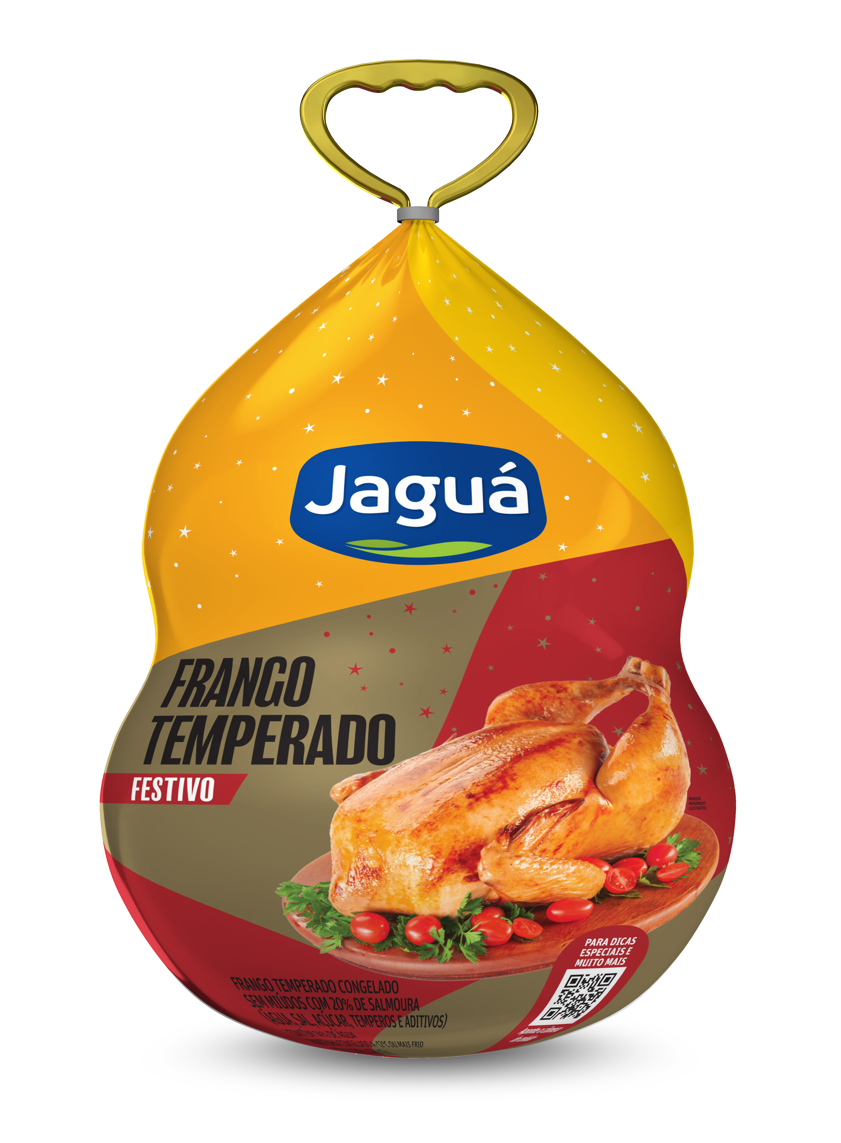 O Frango Temperado Festivo Jaguá vem já com tempero especial à base de ervas, alho e especiarias suaves, congelado para praticidade em datas comemorativas. Basta levar ao forno por cerca de 1h30 a 180 °C: a pele ganha crosta dourada e aromática por fora, enquanto a carne fica incrivelmente suculenta e saborosa por dentro. Ideal para ceias de Natal ou celebrações em geral, rende porções para 6-8 pessoas e pode ser recheado com farofa ou legumes. Economiza seu tempo na cozinha, trazendo um toque especial para a mesa sem esforço extra, perfeito para reunir a família com sabor caseiro.