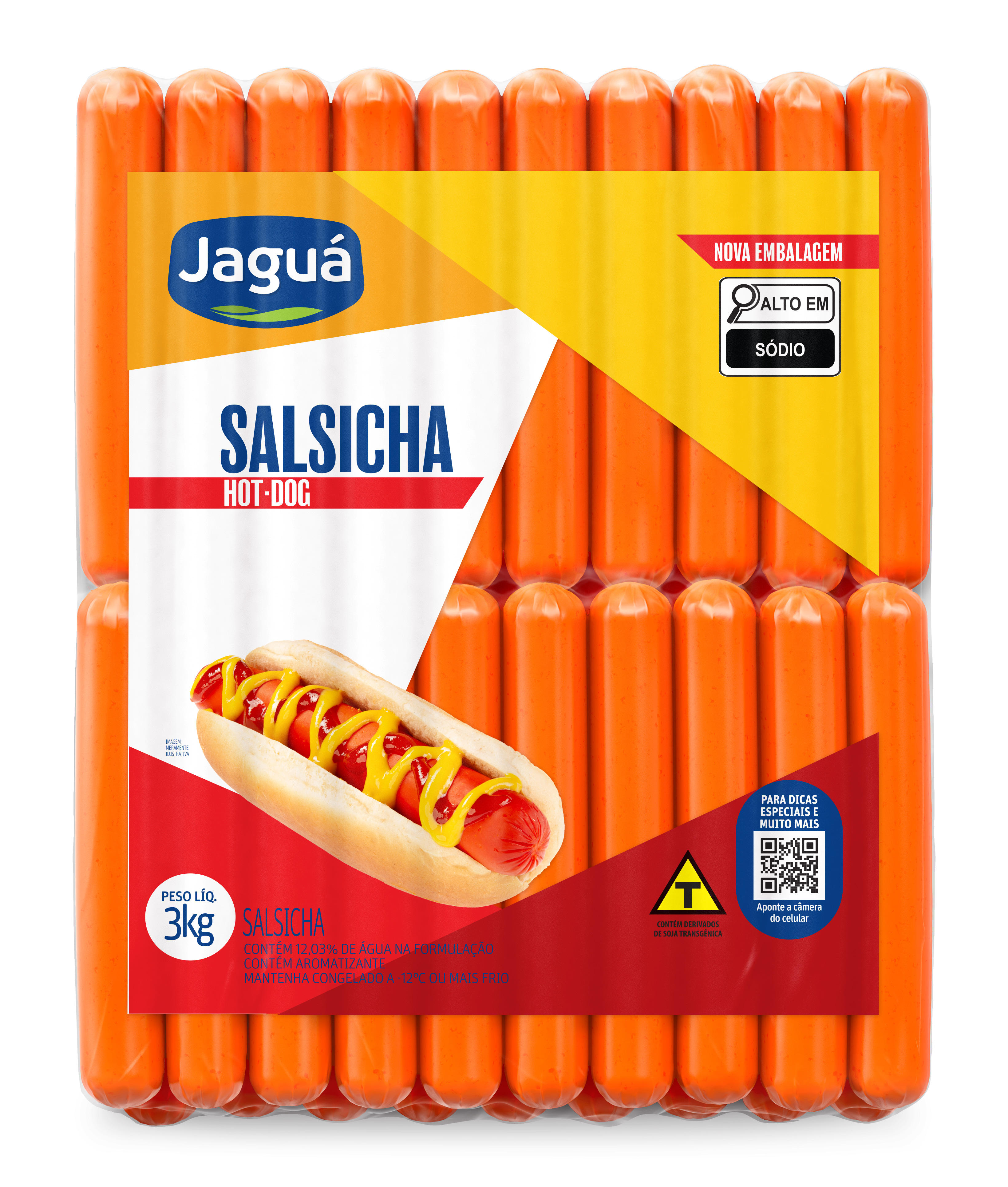 A Salsicha Jaguá é feita com frango selecionado, congelada em embalagem grande para estocar e economizar. Ferva por 5 minutos, grelhe na churrasqueira ou asse na air fryer: suculenta por dentro e com pele estaladiça por fora. Versátil para cachorro-quente, feijoadas, sopas ou petiscos fritos, rende muitas refeições para a família toda. Prática para festas ou o mês inteiro, mantém sabor uniforme e qualidade, facilitando lanches rápidos das crianças ou jantares sem complicação.