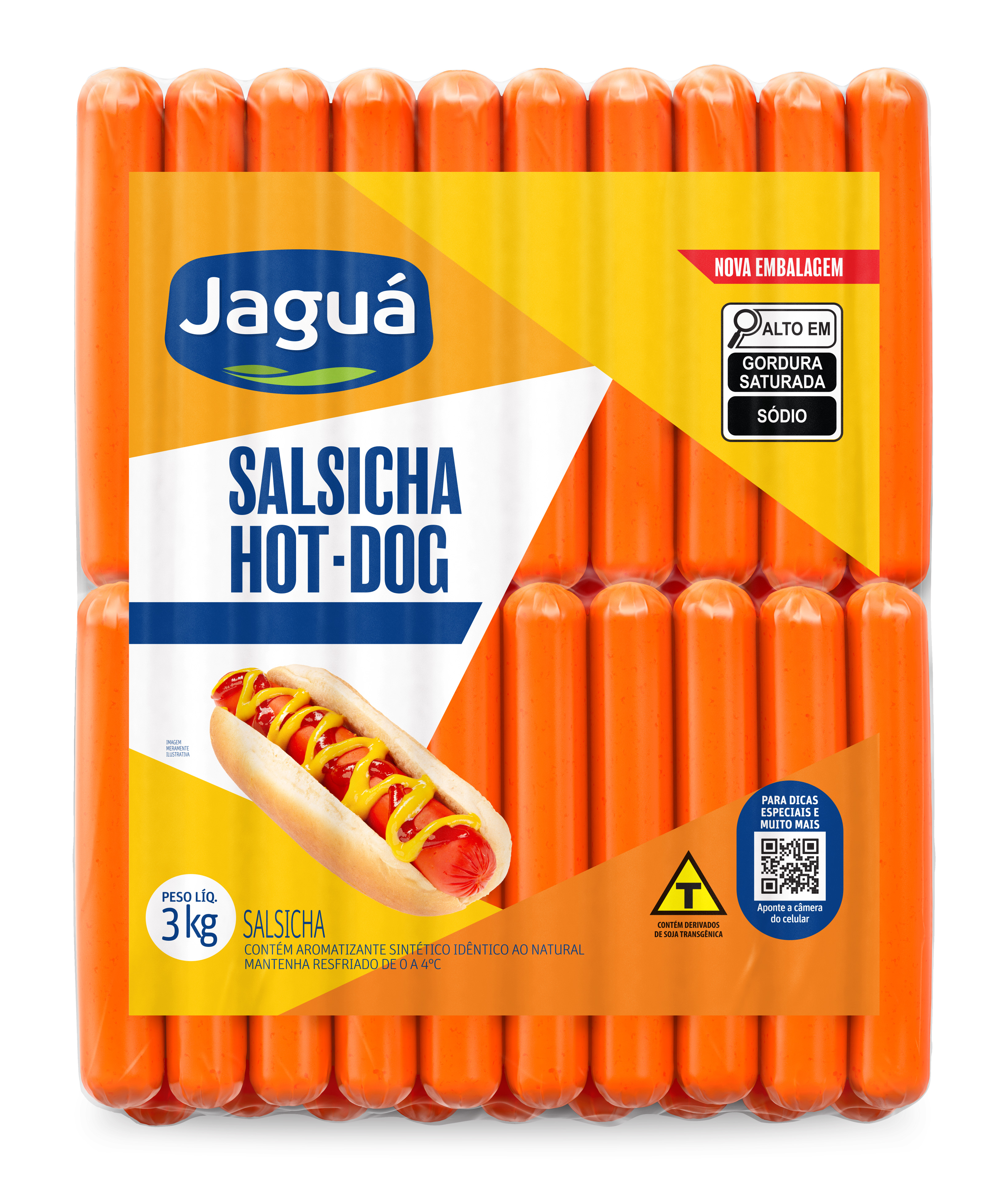 Salsicha Resfriada Jaguá tem textura fresca e elástica, sem congelamento para sabor imediato. Ferva, grelhe, asse ou fatie em sopas. Para hot dogs, feijoadas, ovos mexidos ou petiscos – sempre na mão para imprevistos.