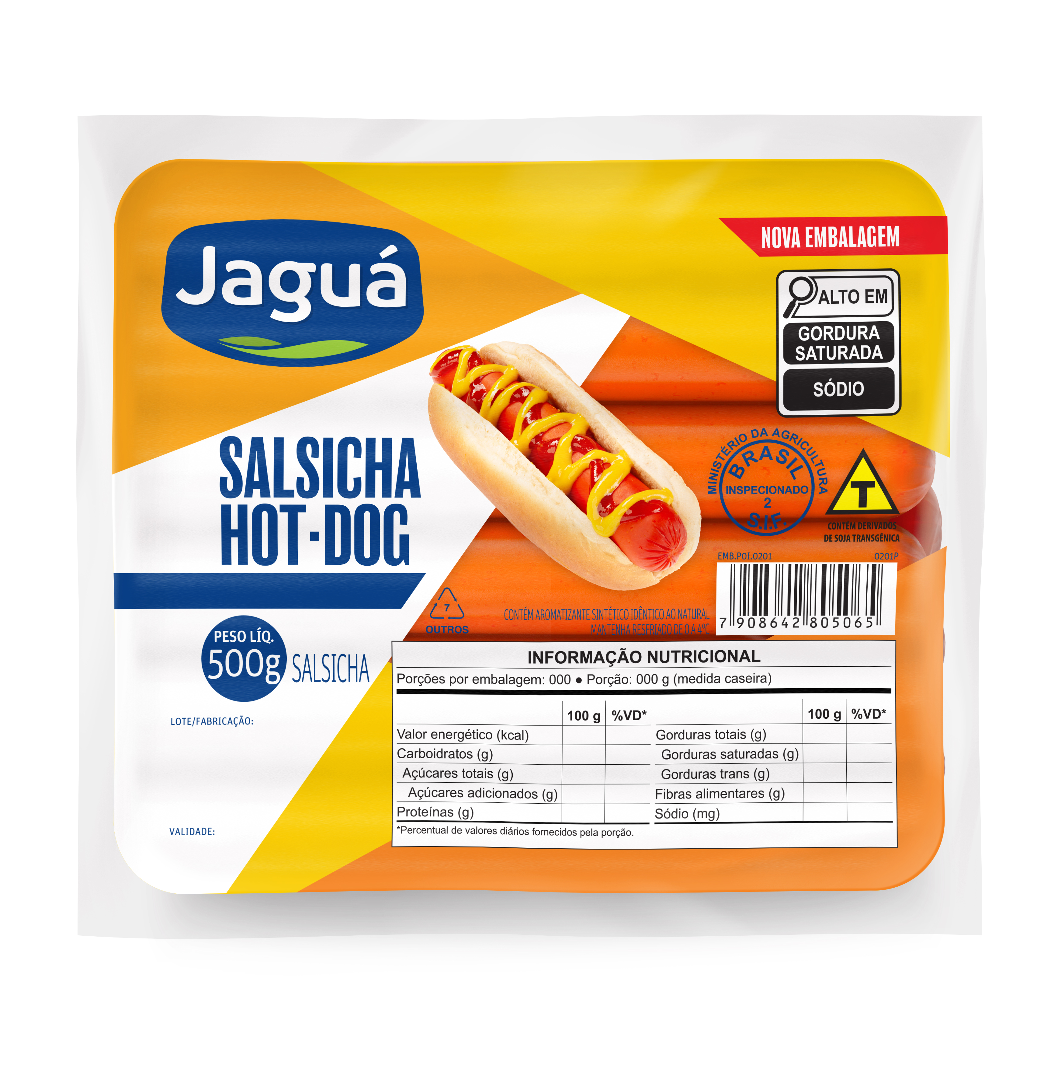 Salsicha Resfriada Jaguá tem textura fresca e elástica, sem congelamento para sabor imediato. Ferva, grelhe, asse ou fatie em sopas. Para hot dogs, feijoadas, ovos mexidos ou petiscos – sempre na mão para imprevistos.