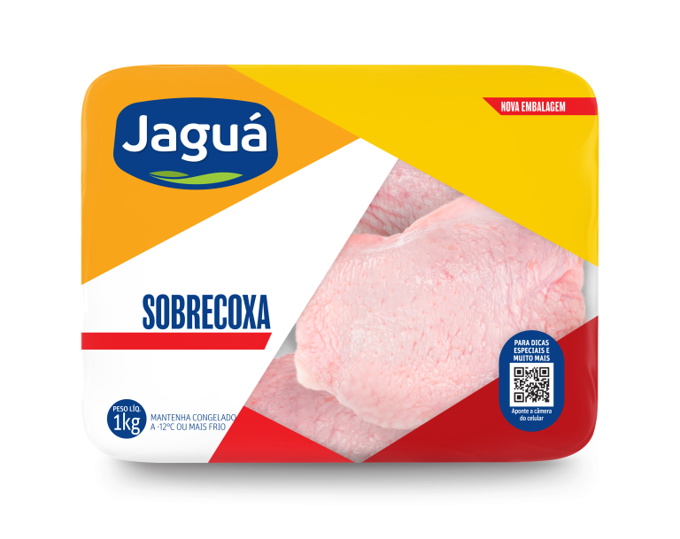 Sobrecoxa Jaguá tem carne mais nobre e tenra. Congelada, pode ser preparada na air fryer ou forno. Suculenta por dentro. Para grelhados premium ou desfiados finos.