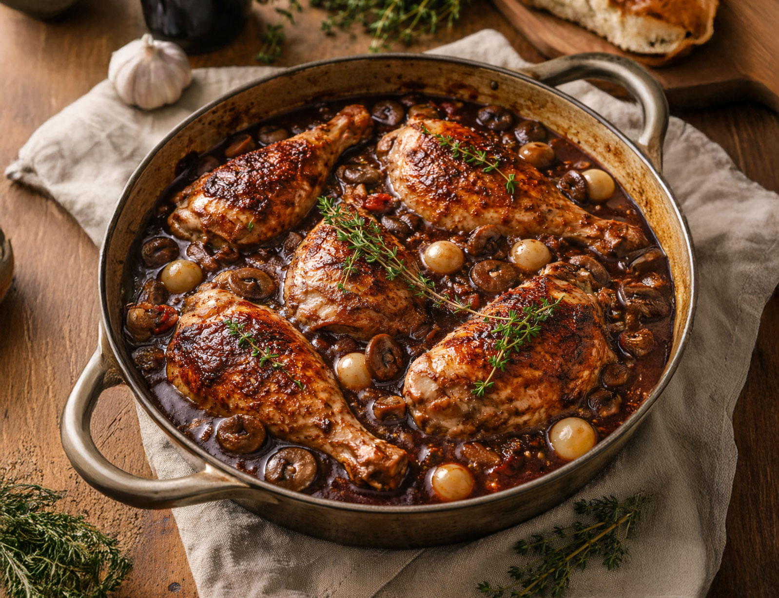 1️⃣ Marine os pedaços de frango no vinho com as ervas, alho e cenoura por pelo menos 4 horas.